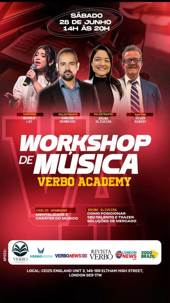 O evento de estreia será marcado pelo Grande Workshop de Música, que acontecerá das 14h às 20h no CEIZS Londres (Unit 3, 145-159 Eltham High Street, SE9 1TW).