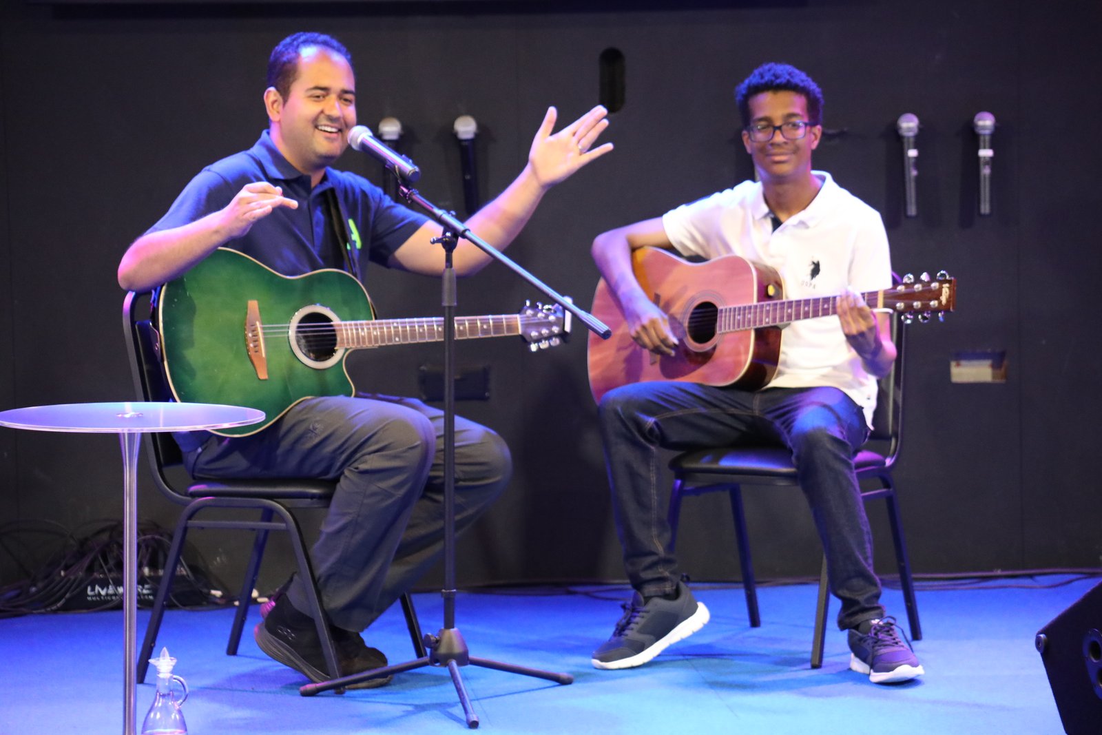 Com menos de dois meses de aulas, um dos destaques da noite emocionou o público ao tocar sua primeira música no violão com confiança e sensibilidade.